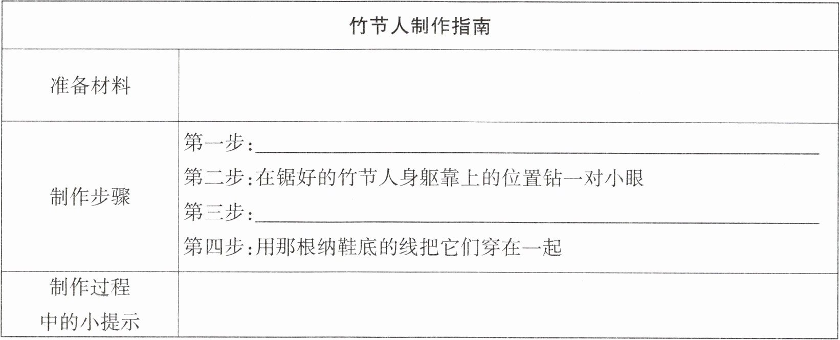 自然段。通过提取关键信息,我可以完成下面的制作指南。| 竹节人制作指南 | |