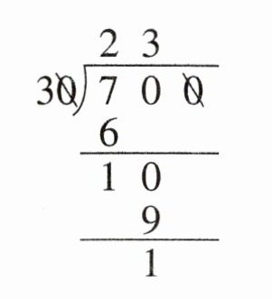 在除法竖式中,除数是30,被除数是700。商的十位上是2,表示2个十,即20,20×30=600,700-600=100;商的个位上是3,3×30=90,100-90=10。所以正确的商是23,余数是10。