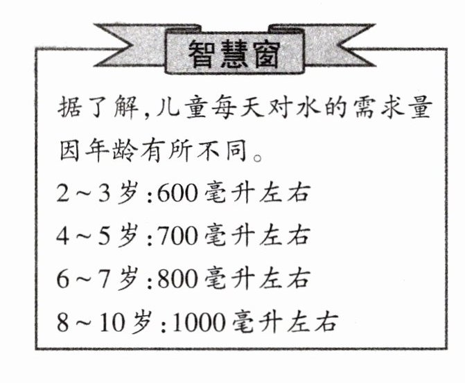 丹丹今年6岁,她的水杯容量为250毫升。她每天用这个水杯喝4杯水,可以满足她每天对水的需求量吗?