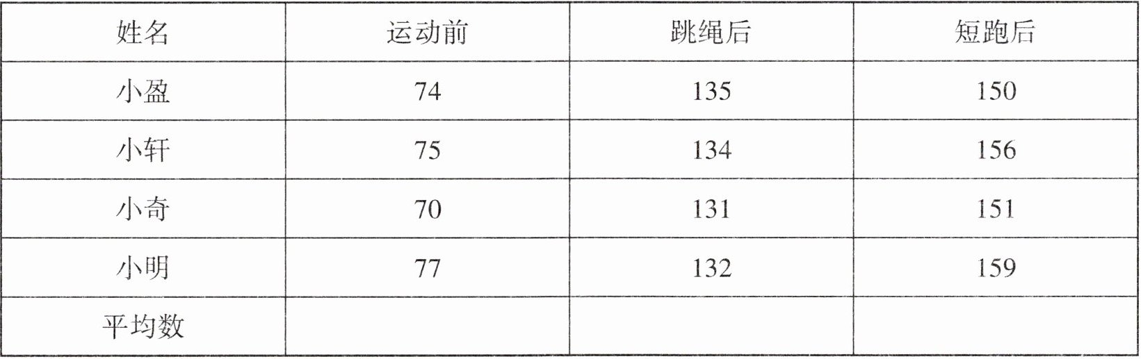 | 姓名 | 运动前 | 跳绳后 | 短跑后 |