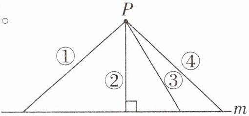 点P到直线m的距离是点P到直线m的垂直线段的长度。图中线段②与直线m垂直,所以点P到直线m的距离就是线段②的长度。