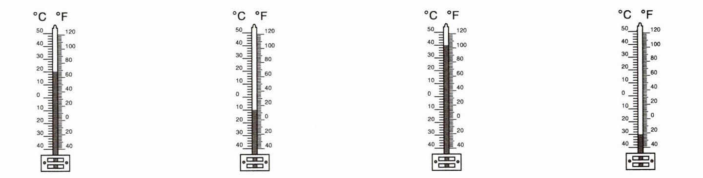 二十摄氏度;零下十摄氏度;三十八摄氏度;零下三十摄氏度