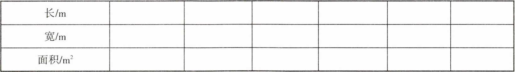 | 宽/m | 1 | 2 | 3 | 4 | 5 | 6 |
