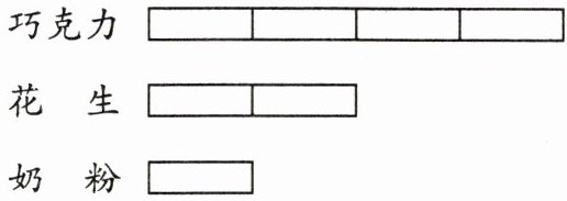 (1) 从图中可以推断出巧克力、花生和奶粉的质量比为$4 : 2 : 1$。