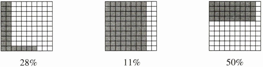五、下面每个大正方形都表示“1”,请用阴影将下面各图补充完整,使每幅图的空白部分与下面的百分数对应。