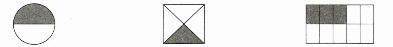 四、下面每个图形都表示“1”,分别用小数和百分数表示下面各图中的涂色部分。