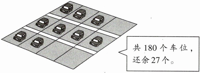 已知车位总数量是$180$个,还余$27$个,那么已使用的车位数量为:$180 - 27 = 153$(个)