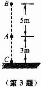 3. 如图所示,从高出地面3 m的位置A点,竖直向上抛出一个小球,它上升5 m后回落,最后到达地面C点,则小球由A点到C点的位移大小为( )