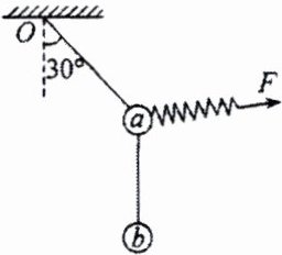 3. 如图所示,两个小球a、b的质量均为m,用细线相连并悬挂于O点.现用一轻质弹簧给小球a施加一个拉力F,使整个装置处于静止状态,且Oa与竖直方向夹角为30°,已知弹簧的劲度系数为k,重力加速度为g,则弹簧的最短伸长量为( )