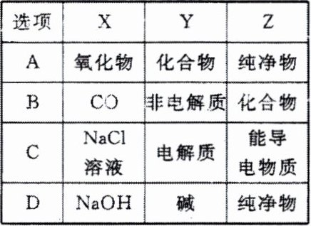 3. 下图表示的一些物质或概念间的从属关系,不正确的是( )