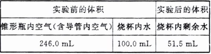 |锥形瓶内空气(含导管内空气)246.0 mL|烧杯内水100.0 mL|烧杯内剩余水51.5 mL|