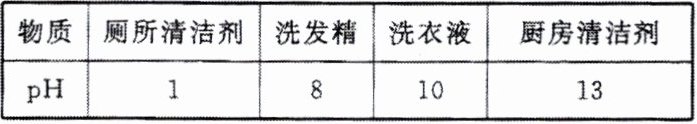 2. 某同学用pH试纸测得家庭常用洗涤剂的pH如下表所示: