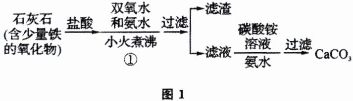 ${CaCO3 ->[稀盐酸、煮沸、过滤][②] 滤液 ->[氨水和双氧水][冰浴③] 过滤 -> 白色晶体}$
