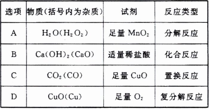 |B|${Ca(OH)2(CaO)}$|适量稀盐酸|化合反应|