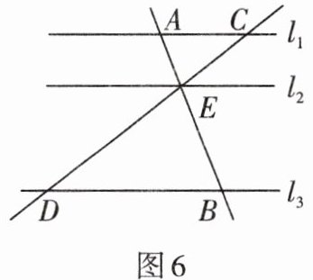 3. 如图6,直线$l_{1}// l_{2}// l_{3}$,已知$AE= 1$,$BE= 2$,$DE= 3$,则$CD$的长为______.