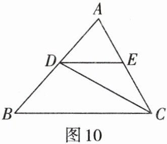 2. 如图10,在$\triangle ABC$中,$CD是\angle ACB$的平分线,$DE// BC$,$AD:DB= 2:3$,$AC= 5$.求$DE$的长.