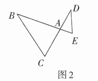 2. 如图2,$\triangle ABC \backsim \triangle ADE$,且$\angle B= \angle D$,$AB= 3$,$AD= 1.8$,则$\triangle ADE与\triangle ABC$的相似比为(