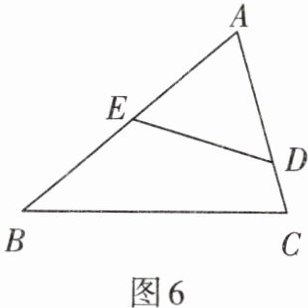 2. 如图6,在△ABC中,E是AB的中点,AB= 6,AC= 4.5,∠ADE= ∠B,求CD的长.