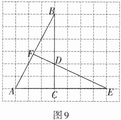 4. 如图9,在正方形网格中,每个小正方形的边长都是1,每个小正方形的顶点叫做格点.△ACB和△DCE的顶点都在格点上,ED的延长线交AB于点F.