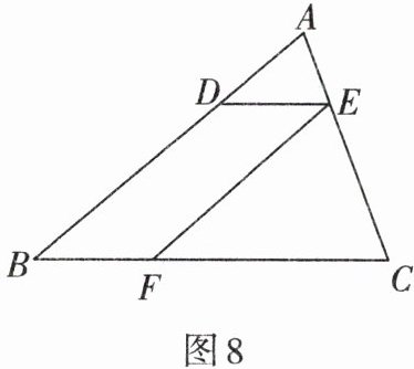 3. 如图8,在△ABC中,AB= 3AD,DE//BC,EF//AB,AB= BC= 9,AC= 6.