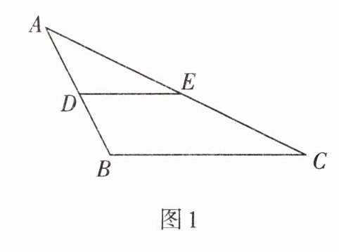 1. 如图1,在△ABC中,D是AB的中点,DE//BC,若DE= 4,则BC的长等于(