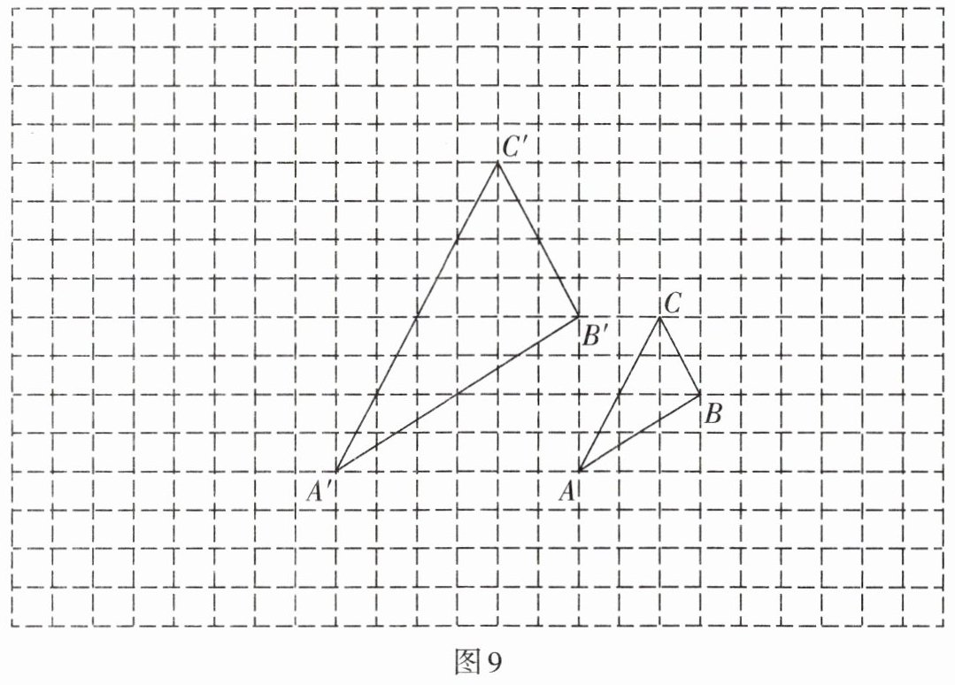 3. 如图9,图中的小方格都是边长为1的正方形,△ABC与△A'B'C'是关于点O为位似中心的位似图形,它们的顶点都在小正方形的顶点上.
