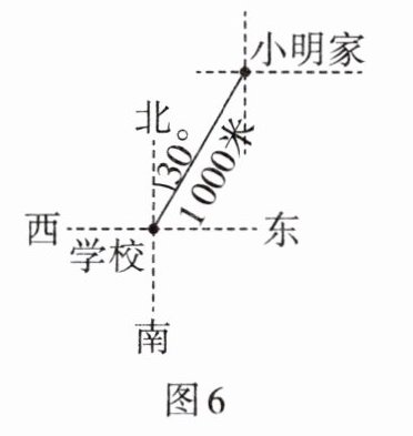 3. 如图6,小明家在学校的北偏东30°方向,距离学校1000米处,则学校在小明家
