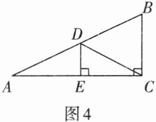因为$D$为$AB$的中点,$DE\perp AC$,所以$DE$平行于$BC$,$E$为$AC$中点,$CD$为斜边$AB$上的中线。