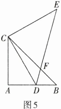 2. 如图5,△ABC为等腰直角三角形,AB= AC,∠BAC= 90°,点D在线段AB上,连接CD,∠ADC= 60°,AD= 2,过点C作CE⊥CD,且CE= CD,连接DE,交BC于点F.求△CDE的面积.