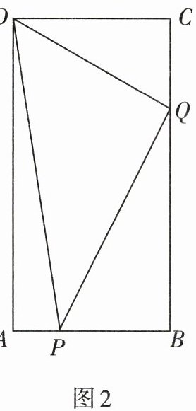 5. 如图2,在矩形$ABCD$中,$AB= 6\ \text{cm},BC= 12\ \text{cm}$,点$P从点A沿边AB向点B$以1 cm/s的速度移动;同时,点$Q从点B沿边BC向点C$以2 cm/s的速度移动,设运动的时间为$t$秒,有一点到终点运动即停止.问:是否存在这样的时刻,使$S_{\triangle DPQ}= 28\ \text{cm}^2$?若存在,请求出$t$的值;若不存在,请说明理由.