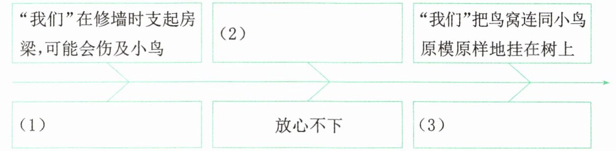 “我们”在修墙时支起房梁,可能会伤及小鸟 → (2)______ → “我们”把鸟窝连同小鸟原模原样挂在树上