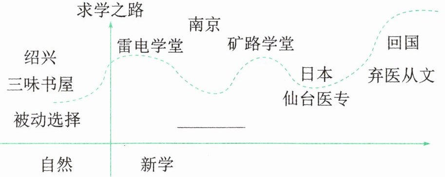 小兴在阅读《朝花夕拾》时,发现可以通过鲁迅先生的“求学之路”,探索他的心路历程,于是绘制了下边的思维导图,请你一起参与完成下面任务。