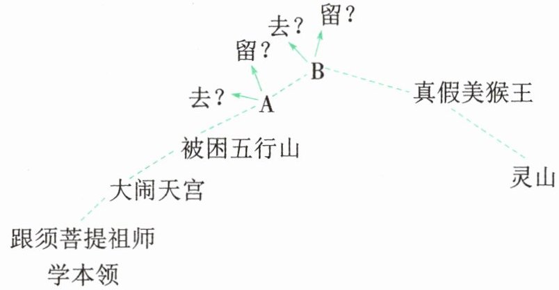 (1)根据《西游记》阅读经验,简洁概括“大圣成长经历”中的A、B两处的情节。(4分)