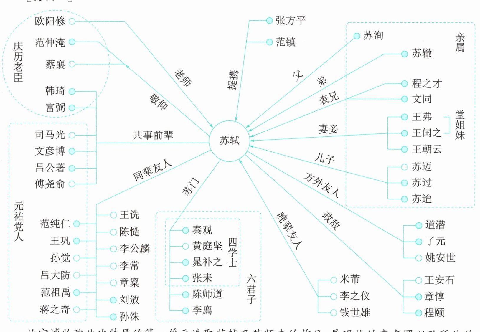 [材料二]作为一代文豪,苏轼开豪放词派先河,其文章诗词俱佳,不仅因文辞精妙而为人传颂,许多作品还因为具有很强的画面感,而成为后世书画家喜爱的创作素材。热爱书画艺术的苏轼一生中创作了大量的题画和论画诗文,还提出了“士人画”的概念,为后世的文人画奠定了理论基础。