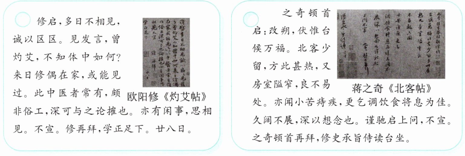 12. 下面是本次展览中欧阳修的《灼艾帖》和蒋之奇的《北客帖》,结合材料一和链接的知识卡片,判断下列说法正确的一项是(3分)( )
