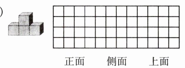 2. 画出下面的物体分别从正面、侧面和上面看到的形状。