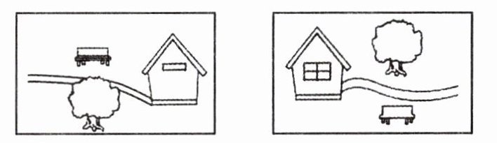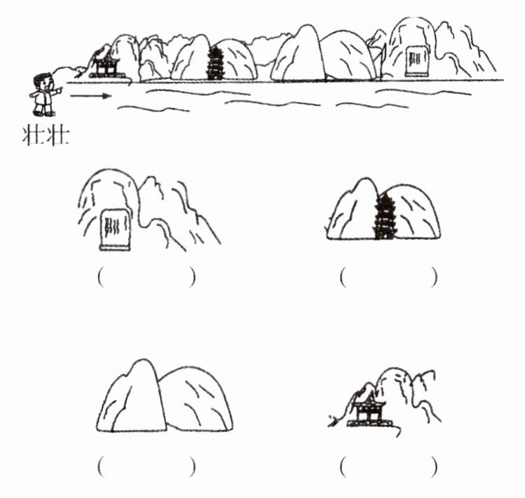 2. 下面是壮壮沿着一条小河拍摄的风景照片,他连续拍了四张,请你用 1、2、3、4 标出照片的拍摄顺序。