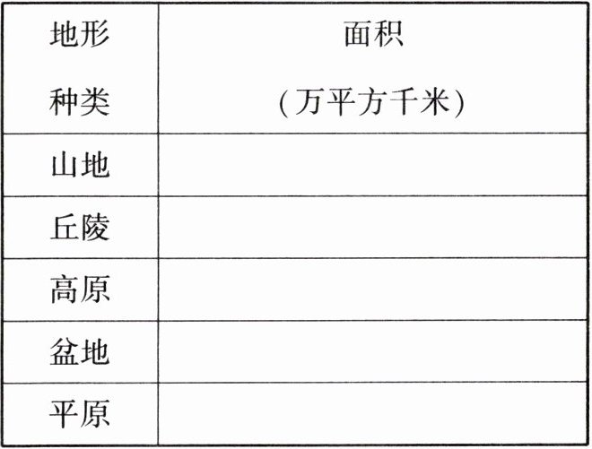 |地形种类|面积(万平方千米)|