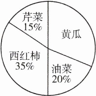 1. 刘叔叔的菜地种植了4种蔬菜,分布情况如下图。若黄瓜的种植面积是$450m^2,$则西红柿的种植面积比芹菜多多少平方米?