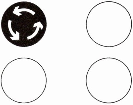 对于右下角三角形与圆组合的图案:圆涂成黑色,三角形涂成灰色。