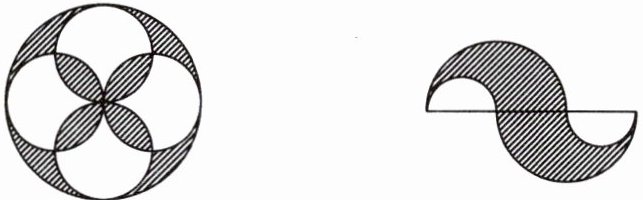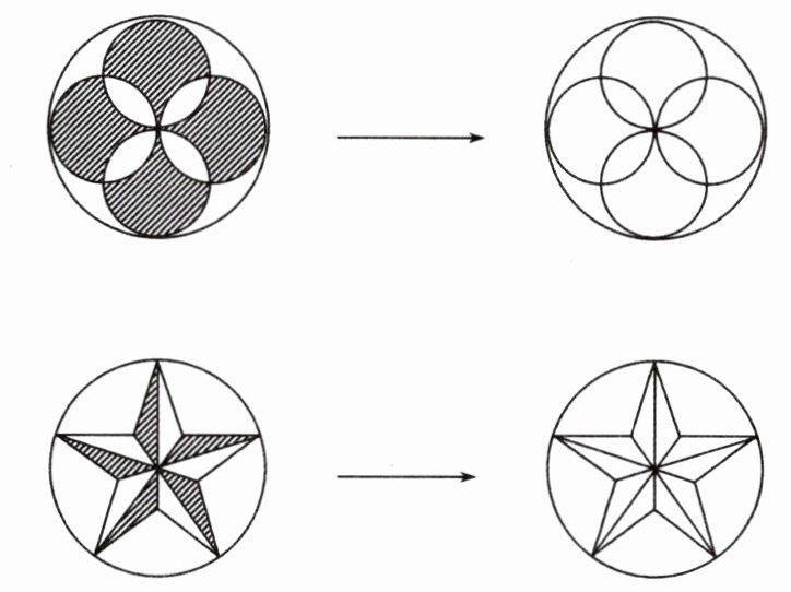 上图:将四个圆相交重叠部分涂成黑色(即左图阴影部分对应位置)。