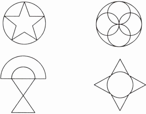 5. 请你以圆为基本图形,画一画生活中常见的一些物品或标志。