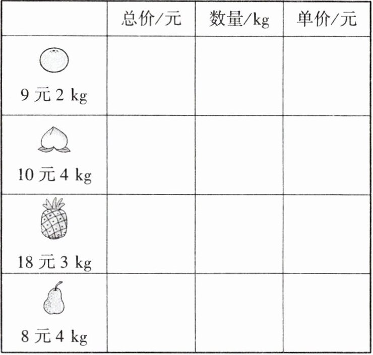 2. 填表,并说说哪种水果最便宜,哪种水果最贵。