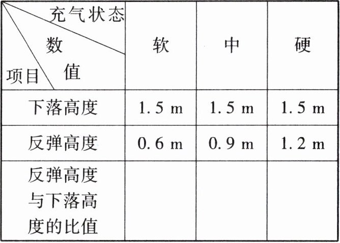 (1) 比较三种不同充气状态下篮球反弹高度与下落高度的比值。