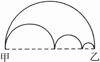 3. 淘气和笑笑同时从甲地去乙地,淘气沿着大圆弧走,笑笑沿着下面的中圆弧和小圆弧走(如图所示),如果他们行走的速度相同,那么谁能先到达乙地呢?