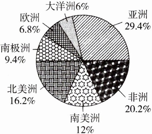 (2)哪两个洲的面积之和接近陆地总面积的50%?
