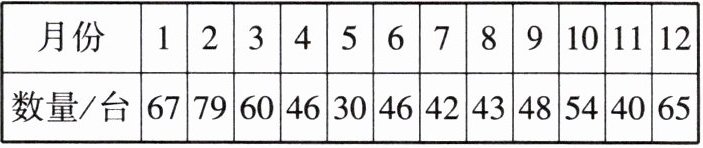 |数量/台|67|79|60|46|30|46|42|43|48|54|40|65|