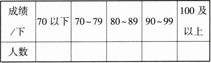 |成绩/下|70以下|70~79|80~89|90~99|100及以上|