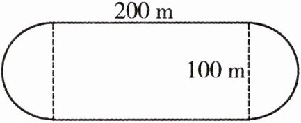 2. 下图是光明小学的操场平面图,两端为半圆形,中间是长方形。小明早上锻炼绕操场跑两圈,他跑了多少米?这个操场的面积是多少平方米?(10 分)