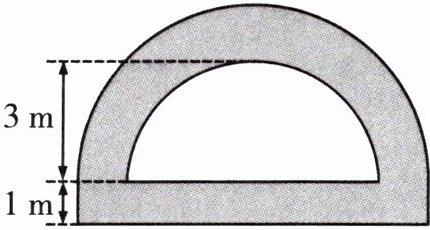 6. 少年科学宫有一个半径是 $ 3 $ 米的半圆形鱼池,在鱼池周围铺了一条 $ 1 $ 米宽的小路(如图),奇思和妙想分别沿小路的内圈和外圈走了一圈,妙想比奇思多走了多少米?(5 分)